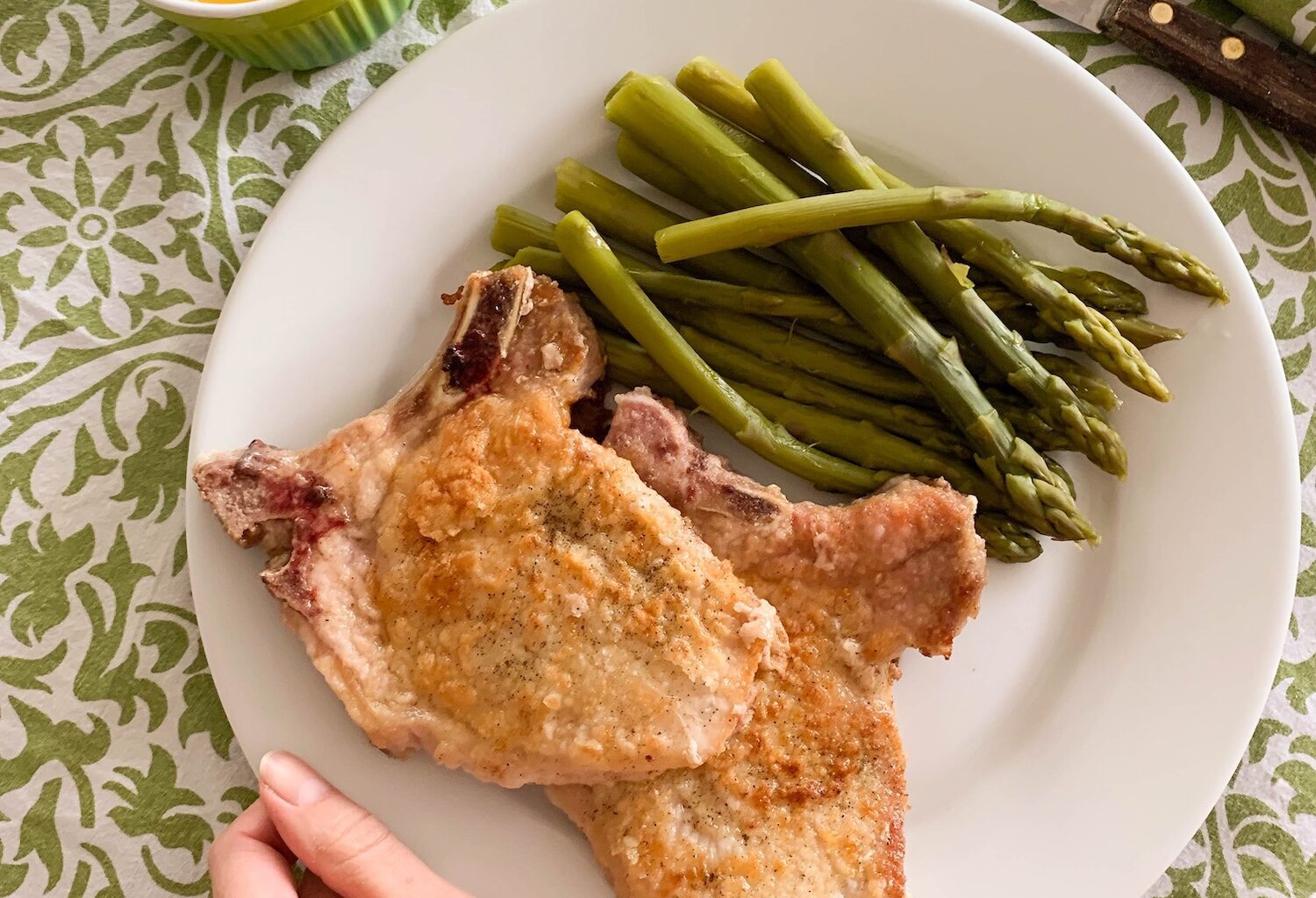 На гарнир к эскалопам из свинины я подаю отваренную спаржу (как на финальном фото к этому рецепту) с домашним майонезом. Пальчики оближешь!