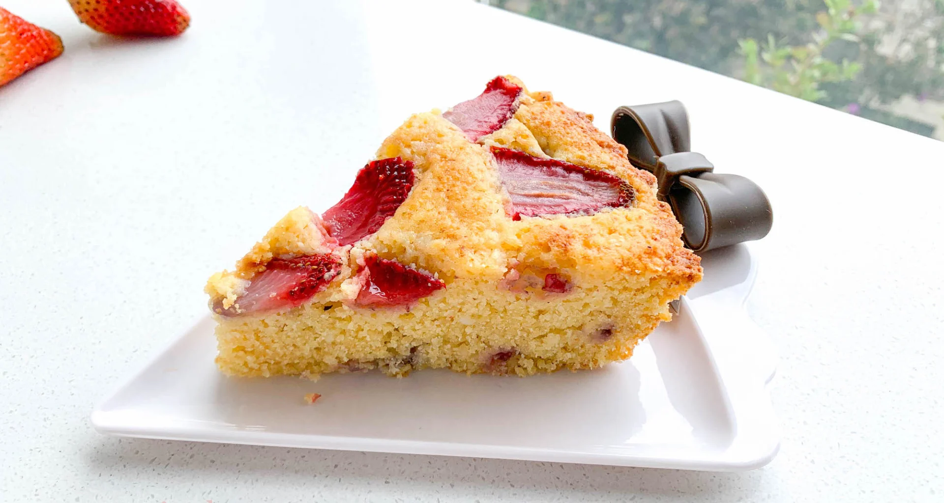 В ход идет только свежая клубника, так что рецепт абсолютно летний, хотя можно и с несладкой зимней клубникой его испечь – сейчас в супермаркетах ее можно найти круглый год.