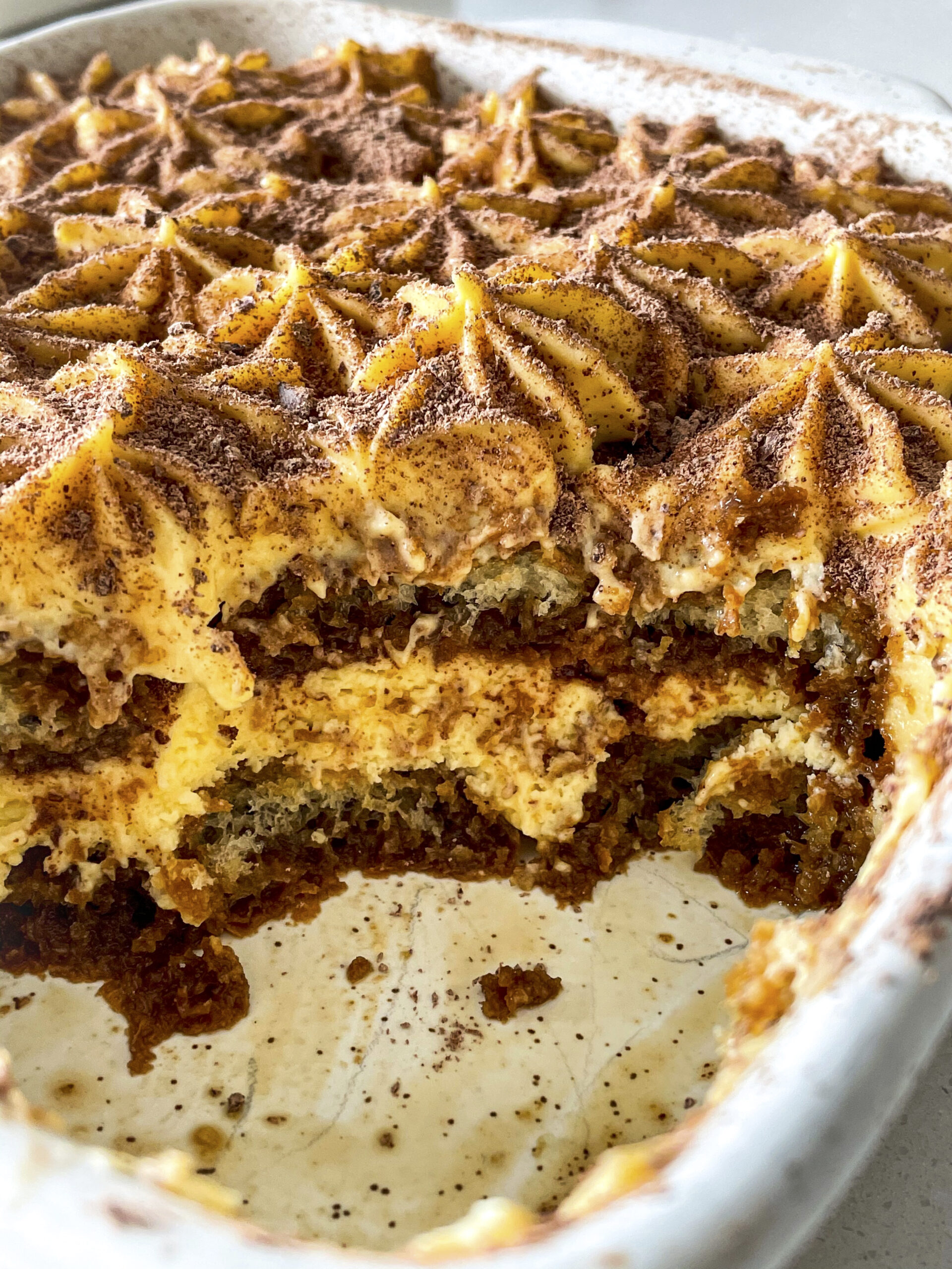 - Если какао сильно впитаеся в крем, то перед подачей тирамису можно еще раз присыпать какао. Я обхожусь без повторного пересыпания (фото 8).